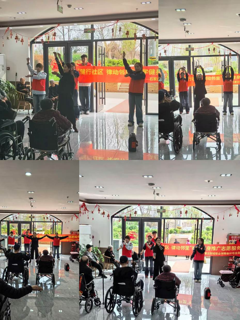 活动中,志愿者们分工明确、服务贴心。大家结合老年群体身体特点,开展分龄科学健身教学,为老人们带来低冲击关节养护操、简易养生健身操,同步细致讲解运动前热身、运动后拉伸及运动损伤预防要点,手把手纠正动作细节,守护老人运动安全。同时,志愿者们组织老人们开展全民律动健身操体验,带领大家集体跟跳、互动打卡,让养护院充满欢声笑语。