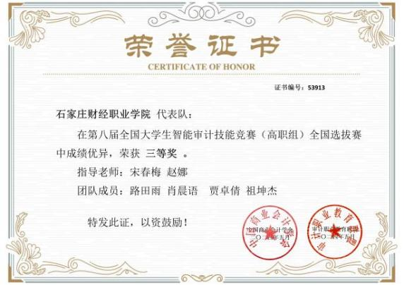 第八届全国大学生智能审计技能竞赛(高职组)全国选拔赛三等奖