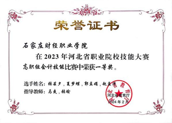 2023年河北职业院校技能大赛高职会计技能一等奖
