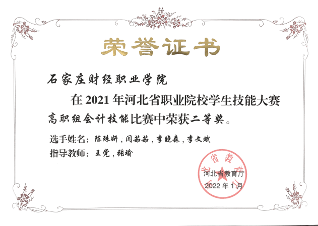 2021年河北省职业院校学生技能大赛高职组会计技能比赛二等奖