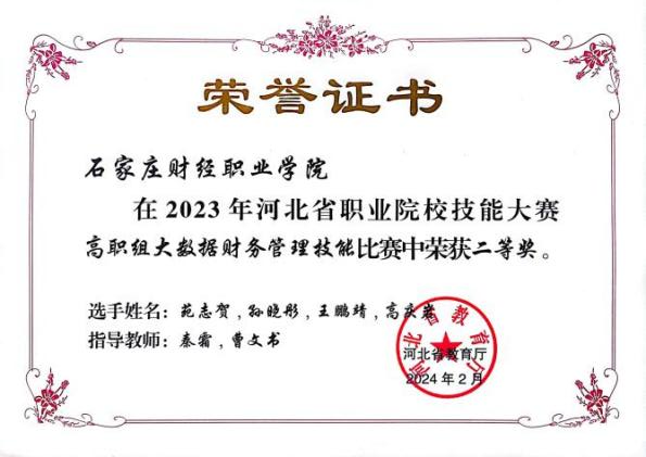 2023年河北省职业院校技能大赛高职组大数据财务管理技能二等奖