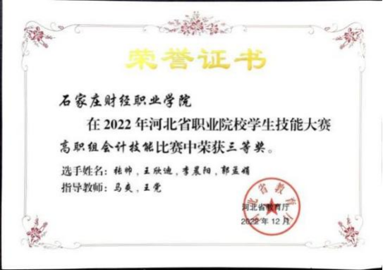 2022年河北省职业院校学生技能大赛高职组会计技能三等奖