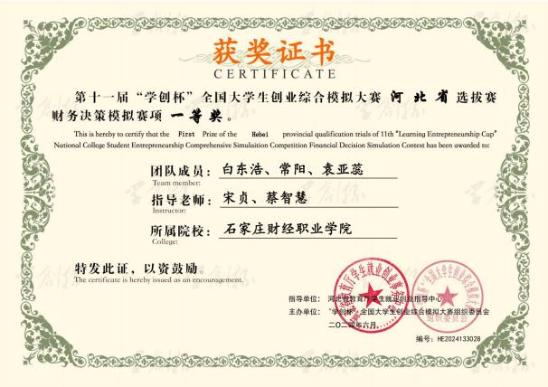 2024第十一届“学创杯”全国大学生创业综合模拟大赛省(区)级选拔赛(财务决策模拟赛项)一等奖