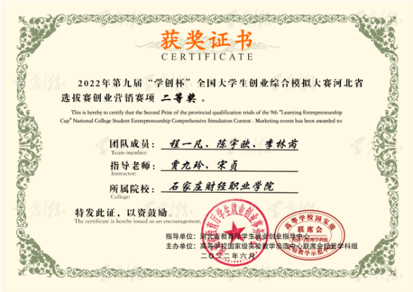 2022年第九届“学创杯”全国大学生创业综合模拟大赛河北省选拔赛创业营销赛项二等奖