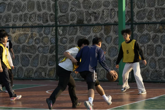 晚上6点,活动正式拉开序幕。简单的热身运动后,各队迅速进入状态。赛场上,队员们热情高涨,配合默契 —— 同学精准传球、巧妙跑位,有的同学奋力起跳、积极防守,还有的同学虽然动作略显生疏,但依旧全力以赴,赢得场边阵阵掌声。场下,未上场的同学组成 “啦啦队”,呐喊声、加油声此起彼伏,偶尔为队员们的小失误打趣调侃,偶尔为精彩进球欢呼雀跃,现场氛围轻松而热烈。