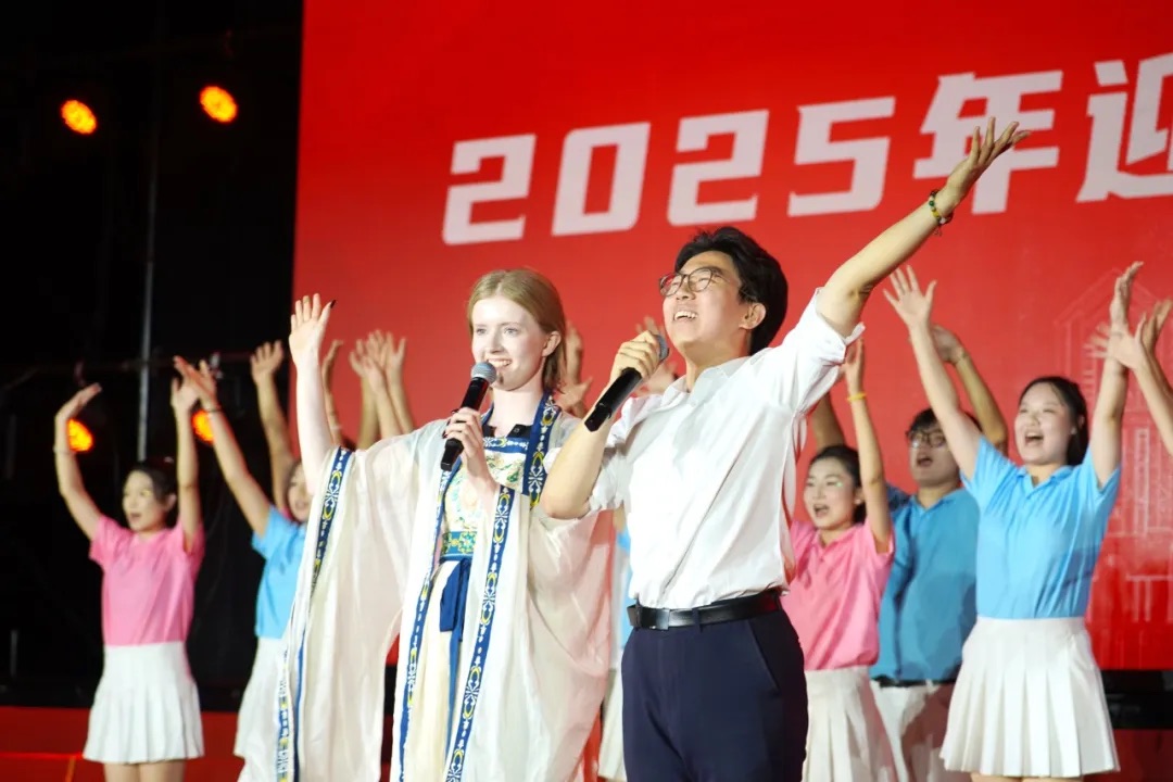 外籍教师Alice在2025年迎新晚会上与学生互动