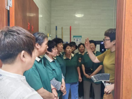 在两校区保洁工作互查互学中,为更好地打造洁净优美的校园环境,同步开展“保洁标准化作业”专项培训。活动中,保洁人员分组交叉检查教学楼、图书馆、公共卫生间等重点区域,聚焦卫生死角、设备维护、垃圾分类等细节,以“旁观者”视角查漏补缺。卧龙校区物业管理中心主任宋平围绕“玻璃清洁标准化流程”开展教学,通过优化清洁剂配比、刮水器角度等技巧,将单块玻璃清洁时间缩短30%;保洁班长现场演示尘推布折叠与路线规划技巧,实用的“小妙招”让参训人员受益匪浅。