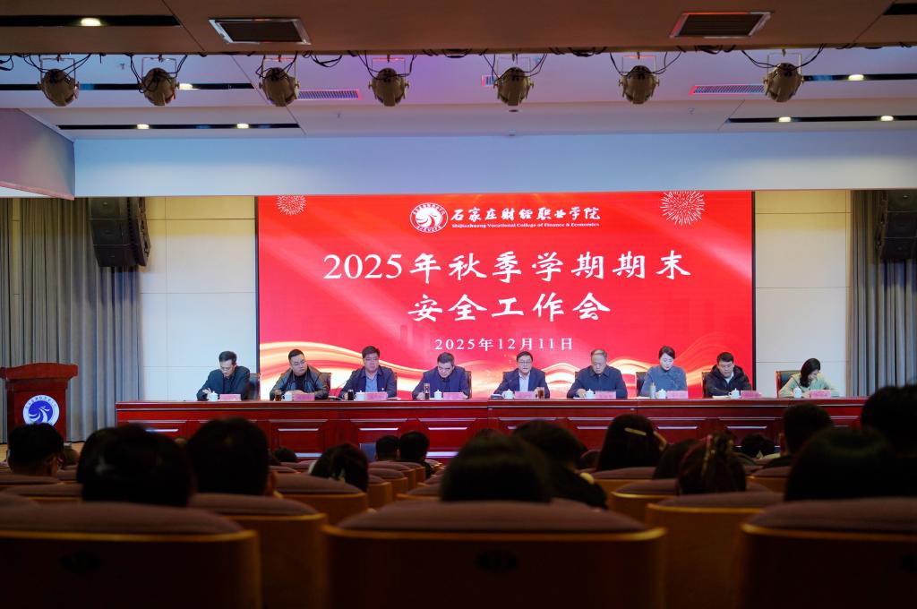 12月11日,我校在图书馆第一报告厅召开2025年秋季学期期末安全工作会议。校长赵建华、党委书记薛向东、副校长高森、王永利、校长助理赵振新、邓佳星、张永昌出席会议。全体中层干部、辅导员及校园商户代表参加会议,会议由副校长王永利主持。