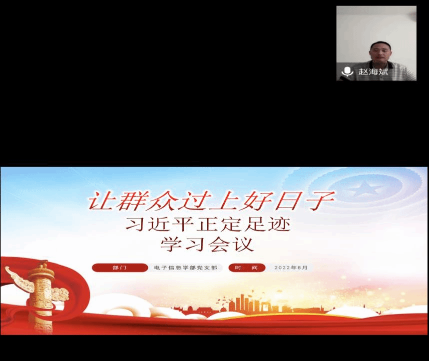 在石家庄财经职业学院党总支的带领下,电子信息学部党支部于2022年8月25日组织了《让群众过上好日子——习近平正定足迹》的线上会议学习。
