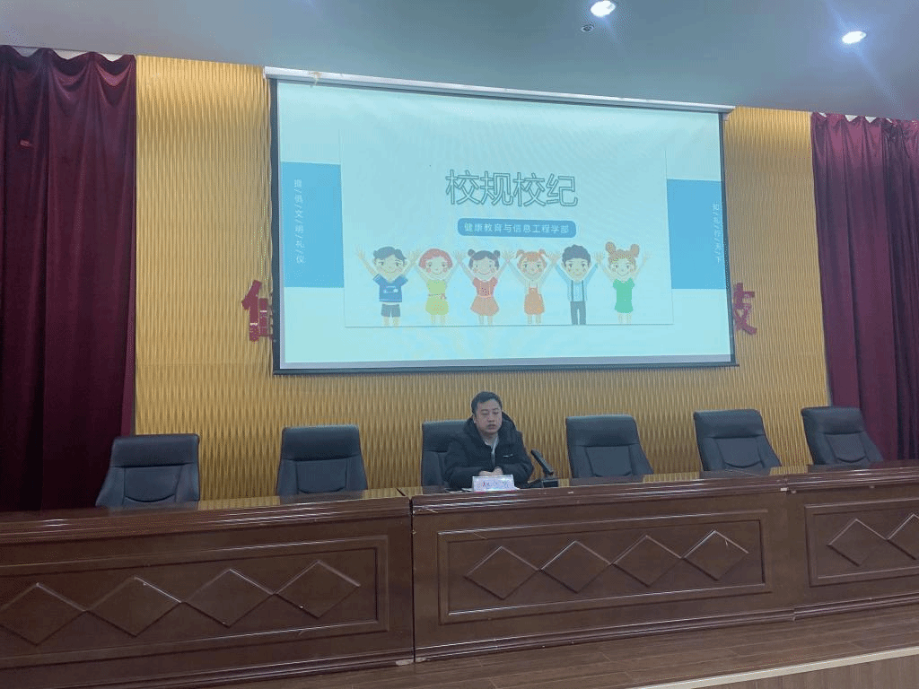 健康教育与信息工程学部辅导员赵会龙老师于3月4日上午向2024级春招生进行了关于校规校纪的新生入学教育,重点强化学生的日常行为规范,明确学生违纪处理办法,并详细介绍了处分申诉程序,以确保学生能够在一个和谐、有序的环境中学习和成长。