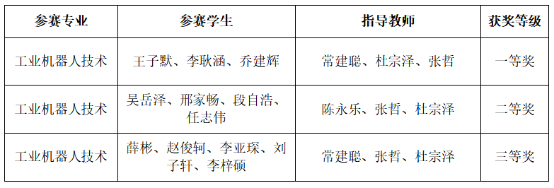 2025年石家庄财经职业学院交通工程学院“机器人系统集成应用技术”一院一赛已顺利结束。经大赛组织委员会交通工程学院严格评审,并报石家庄财经职业学院学生技能大赛组委会批准,现将本次比赛获奖名单公示如下:
