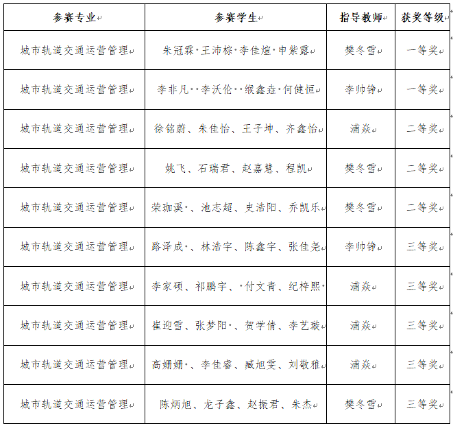 2025年石家庄财经职业学院交通工程学院“高铁信号与客运组织”一院一赛已顺利结束。经大赛组织委员会交通工程学院严格评审,并报石家庄财经职业学院学生技能大赛组委会批准,现将本次比赛获奖名单公示如下: