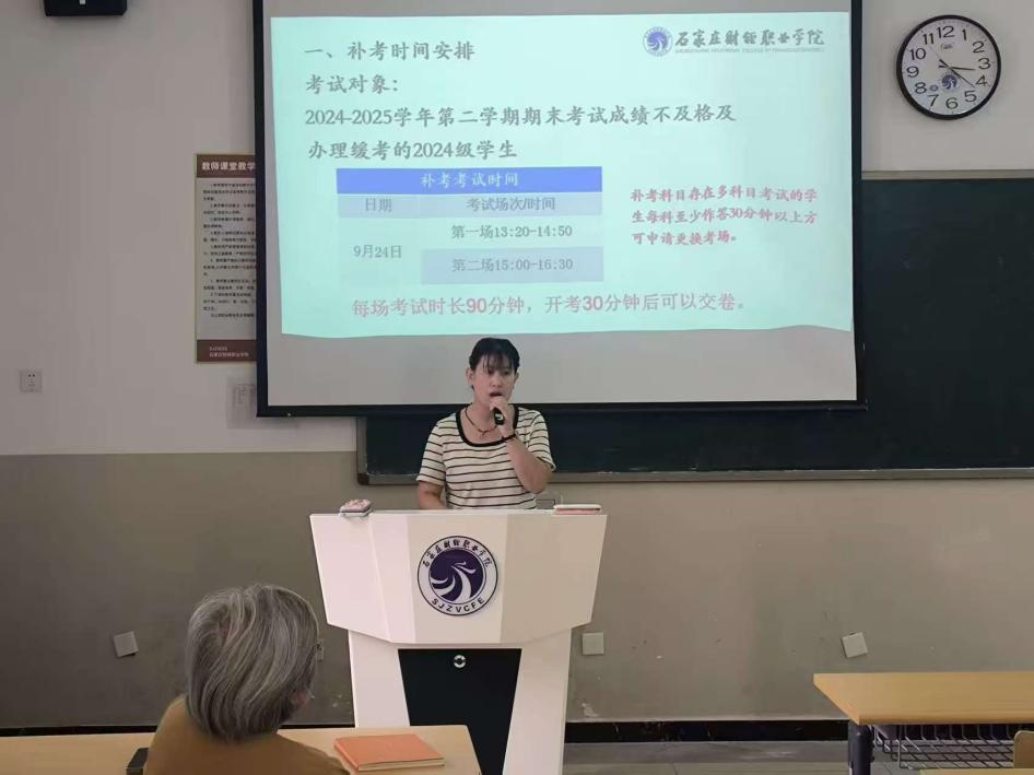 为严肃教学纪律,切实保障补考工作平稳进行,9月23日,我校两校区同步开展2025-2026学年第一学期补考考试考务会,为后续补考工作定标准,明方向。
