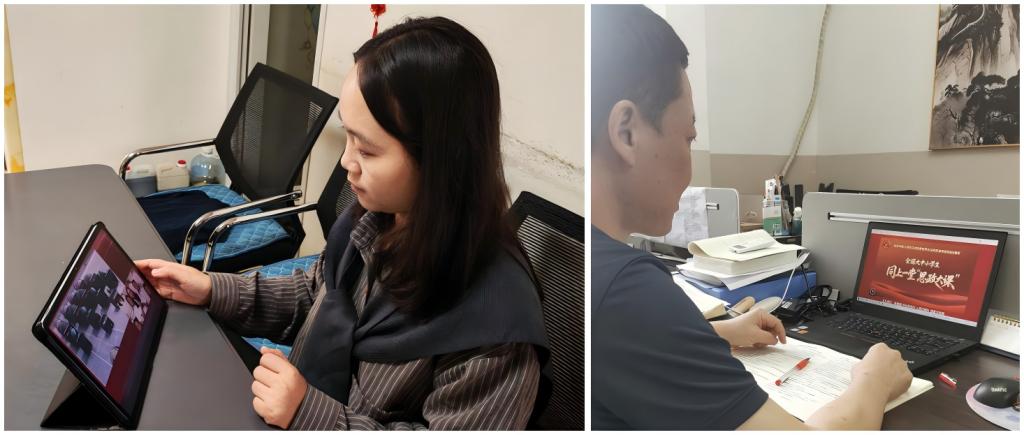 我院教师们积极响应,认真观看学习,并分享自己的感悟。安雪娇老师说:“我观看了线上思政大课‘大国担当’,深受触动。在以后的教学中,我觉得要融入贴近学生生活的案例、可参与的活动,弘扬伟大抗战精神。”张红生老师说:“思政课教的是人,润的是心。今年是中国人民抗日战争暨世界反法西斯战争胜利80周年,我觉得应结合当前大学生的认知特点,从历史深处挖掘抗战精神的时代价值,整合优质思政教学资源,既要有历史的厚度,又要有育人的温度,坚定学生理想信念,促进成长成才。”