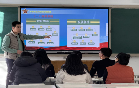 老师首先作动员讲话,他结合当前国防建设对专业人才的需求,强调了大学生应征入伍的重要意义,并鼓励同学们以青春之力投身军营,用专业所长守护家国。