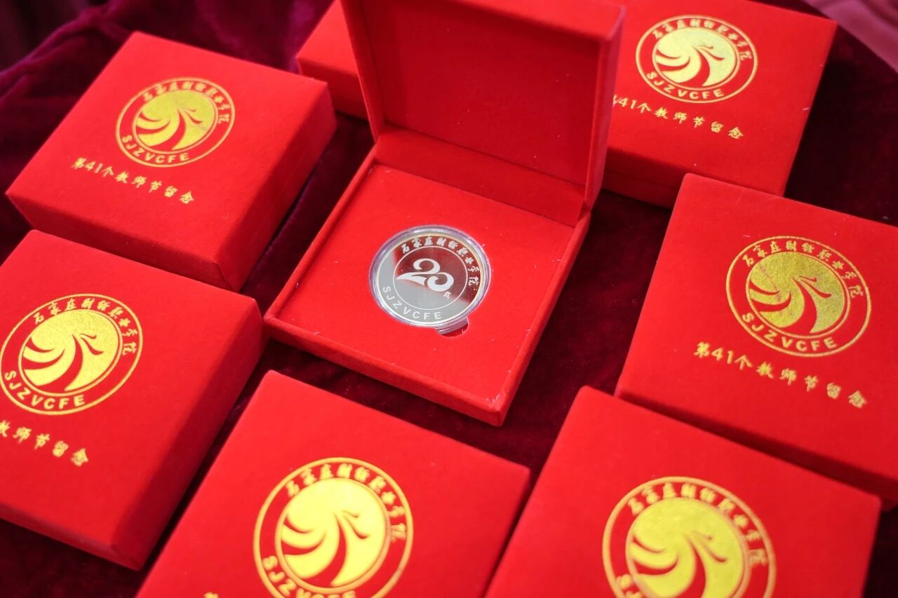 颁奖环节中,校领导为“省级先进德育工作者”“校级教学名师”“十佳教职工”“校级师德标兵”等获奖教师颁奖,充分肯定他们的卓越贡献;同时为从教15年、20年的教师颁发“教龄纪念币”,致敬他们长期以来的坚守与奉献。