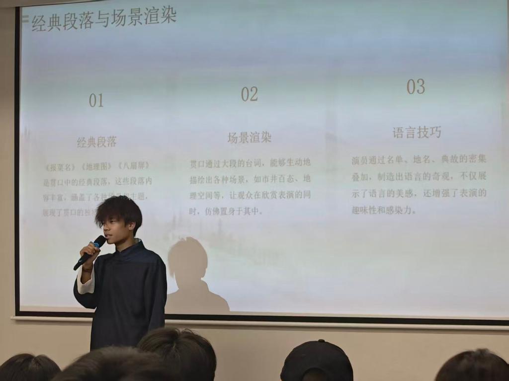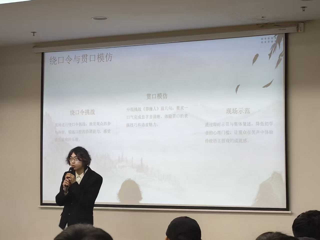 作为校园文化建设的鲜活载体,曲艺社始终以“传承+创新”为内核:从日常社团活动里的曲艺知识分享、经典片段排练,到以“雅聚”为名的文化氛围营造。它以低门槛的参与方式,打破了传统艺术与青年群体的距离——无论是对戏曲唱腔好奇的新生,还是能熟练打快板的爱好者,都能在这里找到与传统对话的切口,让“相声里的幽默”“戏曲里的情怀”,成为财园学子课余生活的鲜活注脚。
