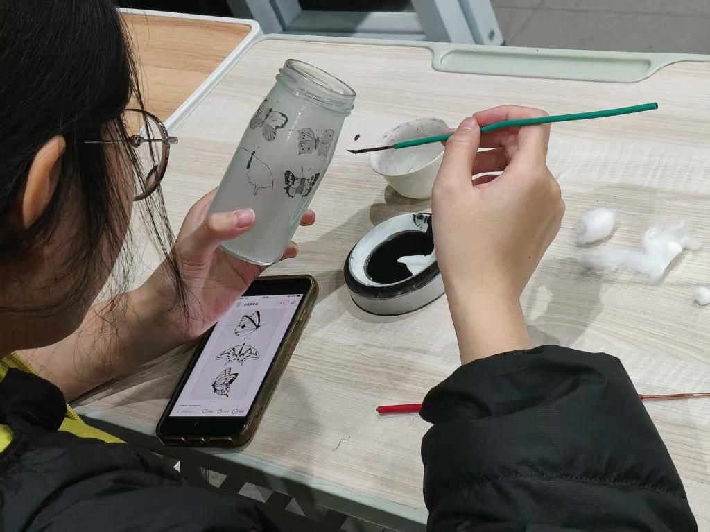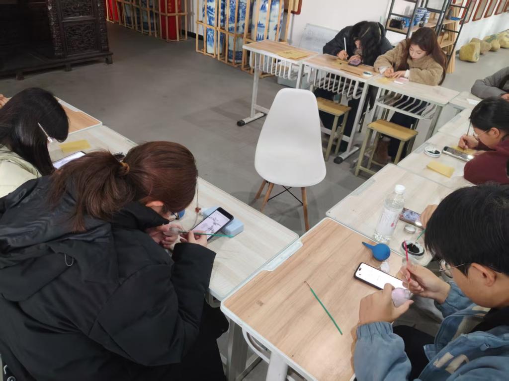 课程设置兼顾理论与实践,涵盖内画历史渊源、工具使用、技法练习等内容。课堂上,负责人亲手示范勾勒、填色等关键步骤,耐心解答学生疑问。同学们兴趣浓厚,纷纷拿起工具尝试,在一笔一画中感受传统工艺的精妙。