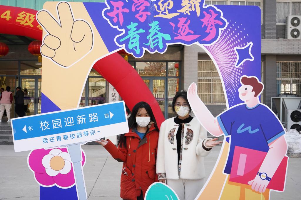 校园里各处打卡点都挤满了前来留念的同学和家长们,合影庆祝即将开启的校园新生活。