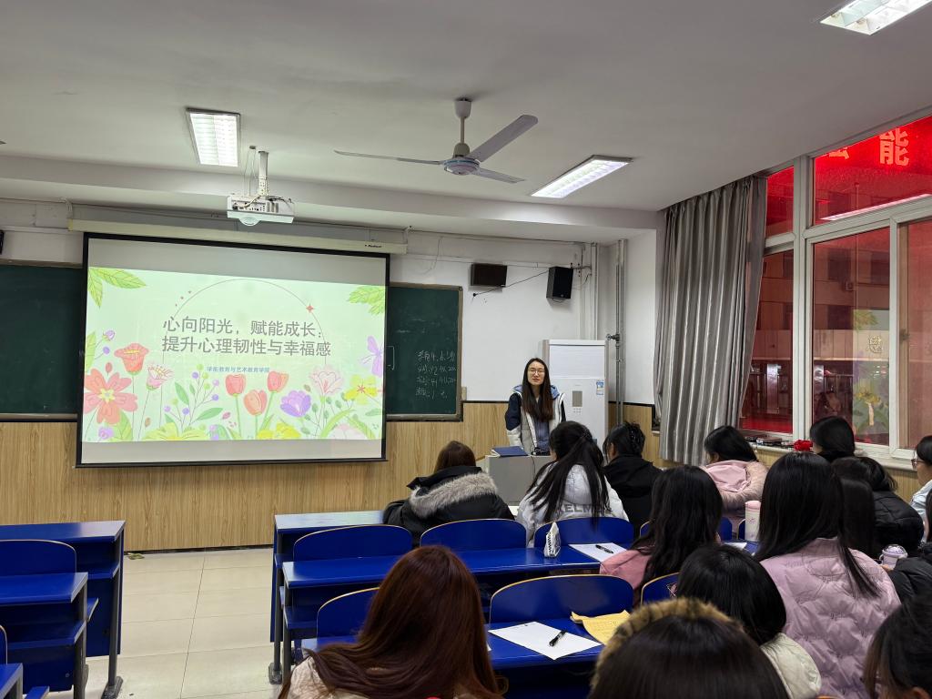 为切实提升学生心理健康水平,培养积极心理品质,近日,学前教育与艺术教育学院开展“心向阳光,赋能成长:提升心理韧性与幸福感”专题讲座。讲座以科学理论为支撑,结合实用技能训练,为学院学子带来一场兼具专业性与实践性的心理健康盛宴。