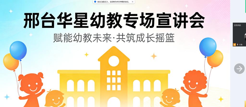 为搭建校企实习合作桥梁,助力学前教育专业学子积累实践经验,2025 年 7 月 9 日 13:30 至 15:30,邢台华星幼教专场实习招聘会在我校学前教育与艺术教育学院线上招聘会成功举办。本次招聘会聚焦保育员实习岗位招聘,吸引 100 名学前教育相关专业学子踊跃参与,求职氛围热烈,校企实习对接高效顺畅。