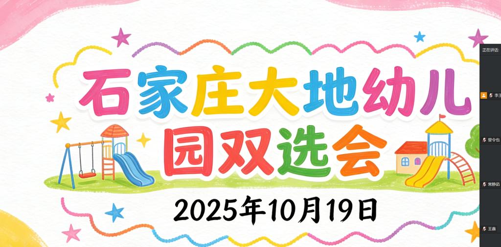 为精准对接学前教育专业人才需求,搭建校企合作共赢平台,2025 年 10 月 19 日 13:00 至 15:00,石家庄大地幼儿园专场校园招聘会在我校学前教育与艺术教育学院 腾讯会议线上顺利举行。本次招聘会聚焦保育员岗位招聘,吸引了 100 名学前教育相关专业学子踊跃参与,现场互动积极、求职氛围热烈。