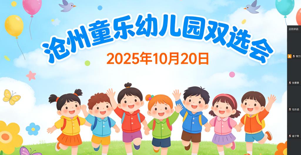为搭建校企人才对接桥梁,助力学前教育专业学子就业发展,2025 年 10 月 20 日 10:00 至 12:00,沧州童乐幼儿园专场校园招聘会在我校学前教育与艺术教育学院腾讯会议线上成功举办。本次招聘会吸引了 100 名学前教育相关专业学子到场竞聘保育员岗位,现场交流热烈、氛围浓厚。