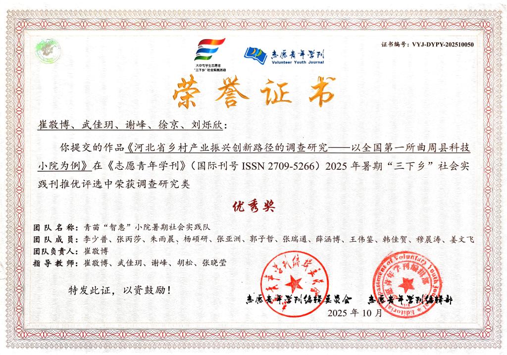 暑期”三下乡“社会实践优秀奖