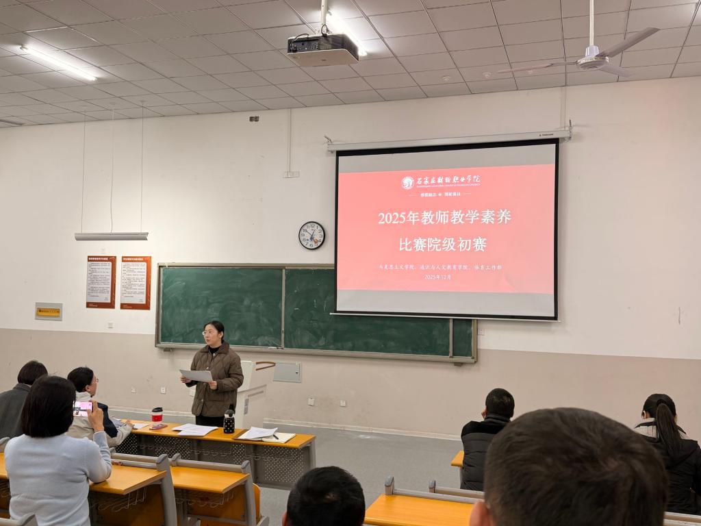 2025年12月10日,马克思主义学院、通识与人文教育学院与体育工作部联合举办的“2025年教师教学素养比赛院级初赛”在教学楼B210顺利开展。