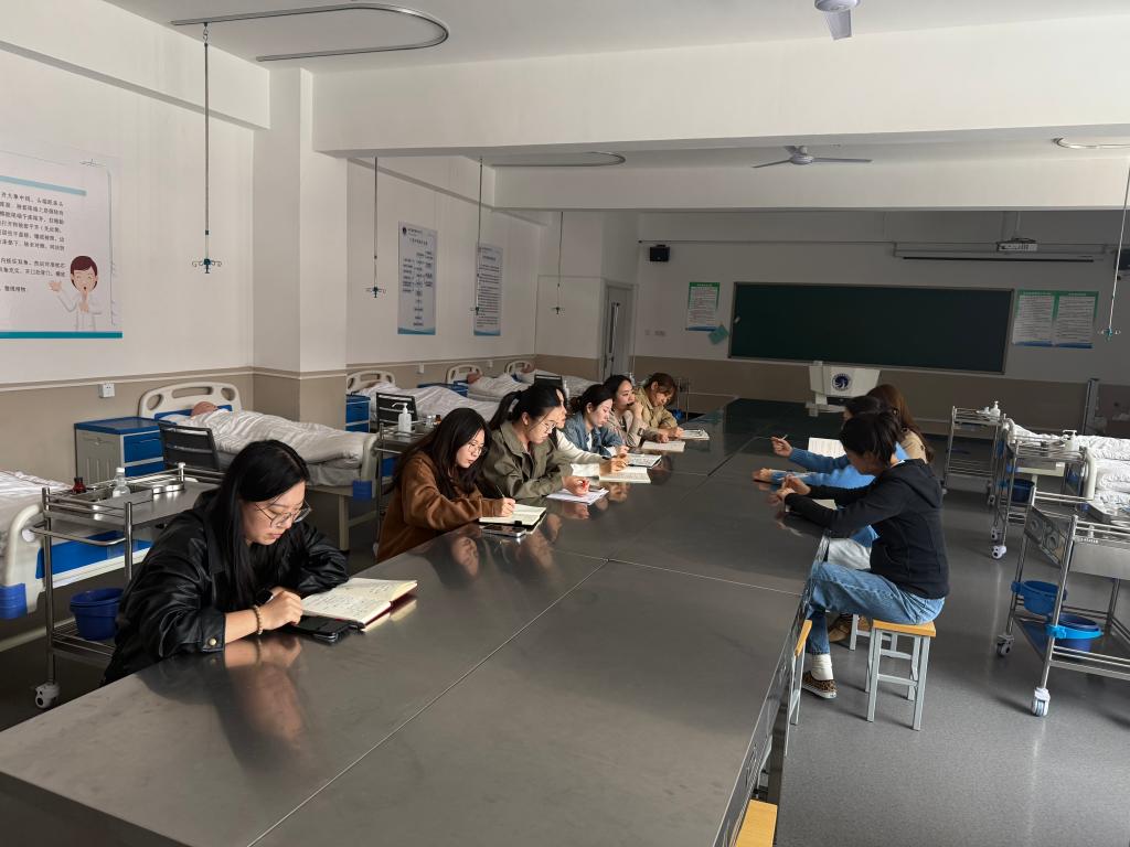 会议伊始,教研室主任明确了本次研讨会的核心意义与议程。她强调,护理专业是实践性极强的学科,教学能力大赛检验教师的教学设计、课堂实施与教学创新能力,学生技能大赛则锤炼学生的临床操作、应急处置与职业素养,两者相辅相成、密不可分。当前,部分教学存在“重赛轻教”“师生参赛脱节”等问题,开展本次联动研讨,就是要打通赛事与教学的壁垒,让大赛成为连接教师成长与学生发展的桥梁,真正实现“师生同赛、教学共进”的育人目标,为培养高素质护理人才筑牢根基。
