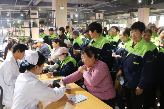 “高血压可能悄无声息地危及生命”,随着队员的科普讲解,原本说笑的保洁员们渐渐安静下来。保洁员陈姨摸着后颈低声说道:“上个月扫落叶时眼前一黑,还以为是累着了……明天就去医院好好查查。”“师傅,您平时要注意饮食清淡,适当运动,规律监测血压。”队员一边认真记录测量数据,一边耐心叮嘱健康注意事项。许多后勤职工表示,由于日常工作繁忙,很少有机会进行系统体检,这场义诊让他们及时掌握了自身健康状况。食堂保洁员李阿姨检查完血压后感动地说:“平时都是我们为师生服务,今天反过来被大家惦记、关心,心里特别温暖!”张阿姨排队时还打趣隔壁王姐过于紧张,可轮到自己坐下测量时,才发现手心早已满是汗水。“脉细得像蜘蛛丝,是不是经常没按时吃饭?”负责把脉的队员眉头微蹙,当即从兜里掏出一块糖递给张阿姨,轻声叮嘱:“要是因为低血糖晕倒了,怎么继续守护咱们的校园呀?”