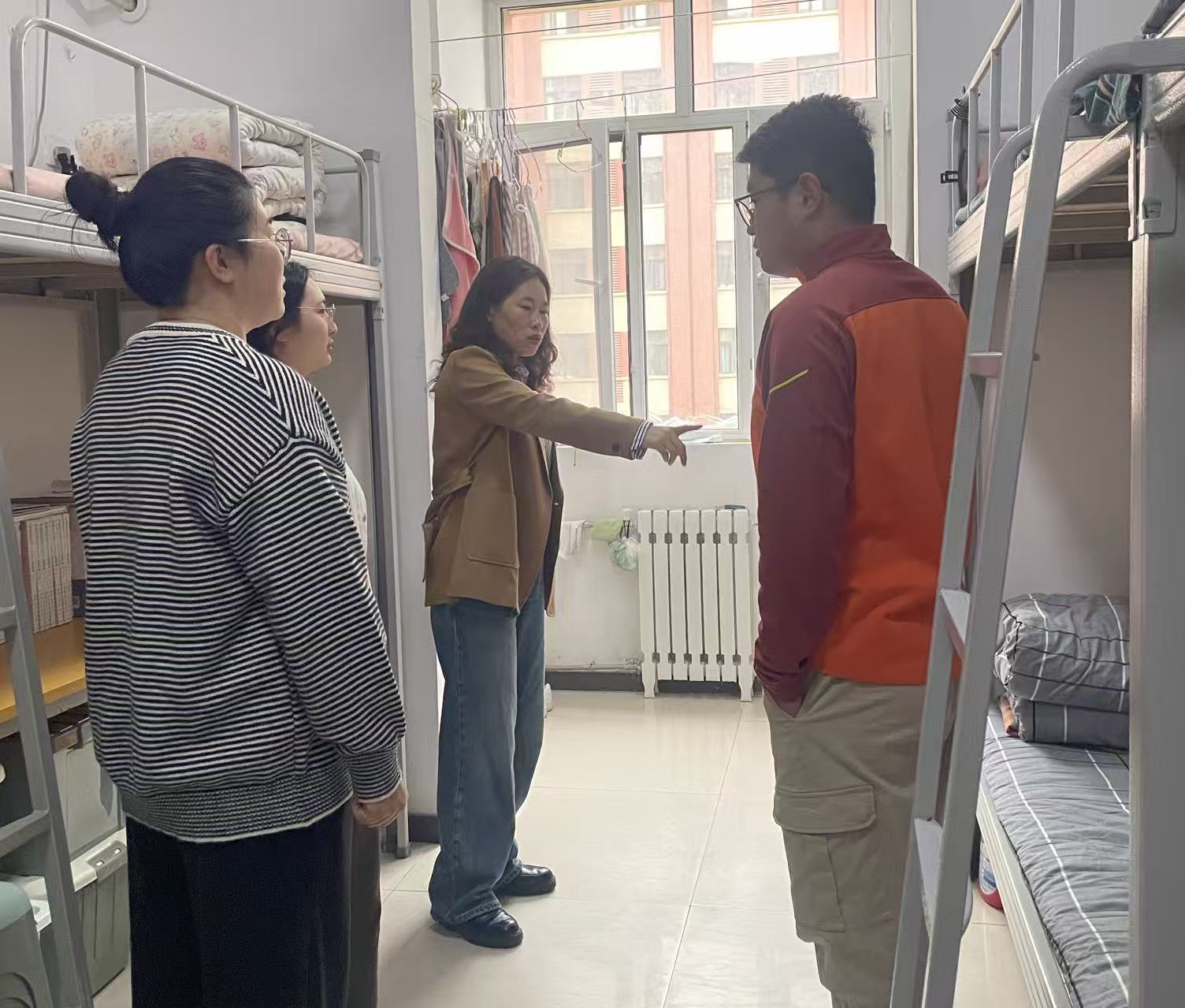 检查过程中,书记与同学们亲切交谈,询问大家的住宿感受和日常生活中遇到的问题,耐心叮嘱同学们要提高安全防范意识,不使用违规电器、不私拉电线,离开宿舍时记得关掉电源、锁好门窗,主动排查身边的安全隐患,和室友们一起维护干净、安全、和谐的住宿环境。针对检查中发现的个别宿舍存在的小隐患,辅导员当场督促学生整改,对不能立即整改的,详细做好记录,建立隐患整改台账,明确整改时间和责任人,确保所有隐患全部清零、不留死角。