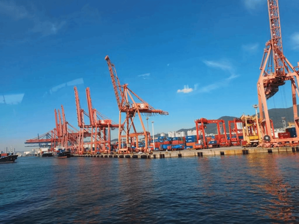 此次学习考察的行程还包括了釜山物流港。釜山港位于韩国东南端,是连接太平洋和欧亚大陆的海上枢纽,既是韩国第一大港口,也是世界第六大集装箱港口。教师团队在工作人员的陪同下了解了港口的总体设计与运行情况,并与随行韩国高校教师就产教融合实训基地建设问题进行了探讨。