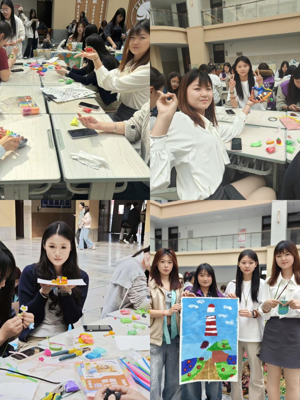 为深入落实大学生心理健康教育工作,贴合学前教育专业育人特色,引导学生关注心灵健康、释放青春情绪、感受艺术创作的治愈力量,近日,石家庄财经职业学院学前教育与艺术教育学院精心策划并开展“325心理活动周”主题手工创作活动。活动于下午14:00至16:00在思源楼一楼大厅举办。春日午后的阳光透过落地窗缓缓洒落,轻柔地铺洒在地面与桌面,为每一位同学镀上柔和光晕,每个人身上都散发着青春的明媚光辉。同学们以黏土、绘画、扭扭棒为载体,在欢声笑语中舒展身心、畅意创作,度过了一段温暖难忘的美好时光。
