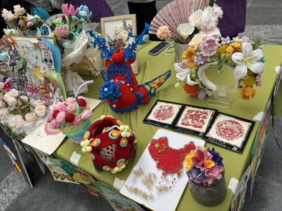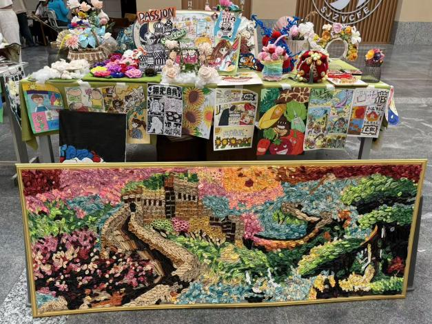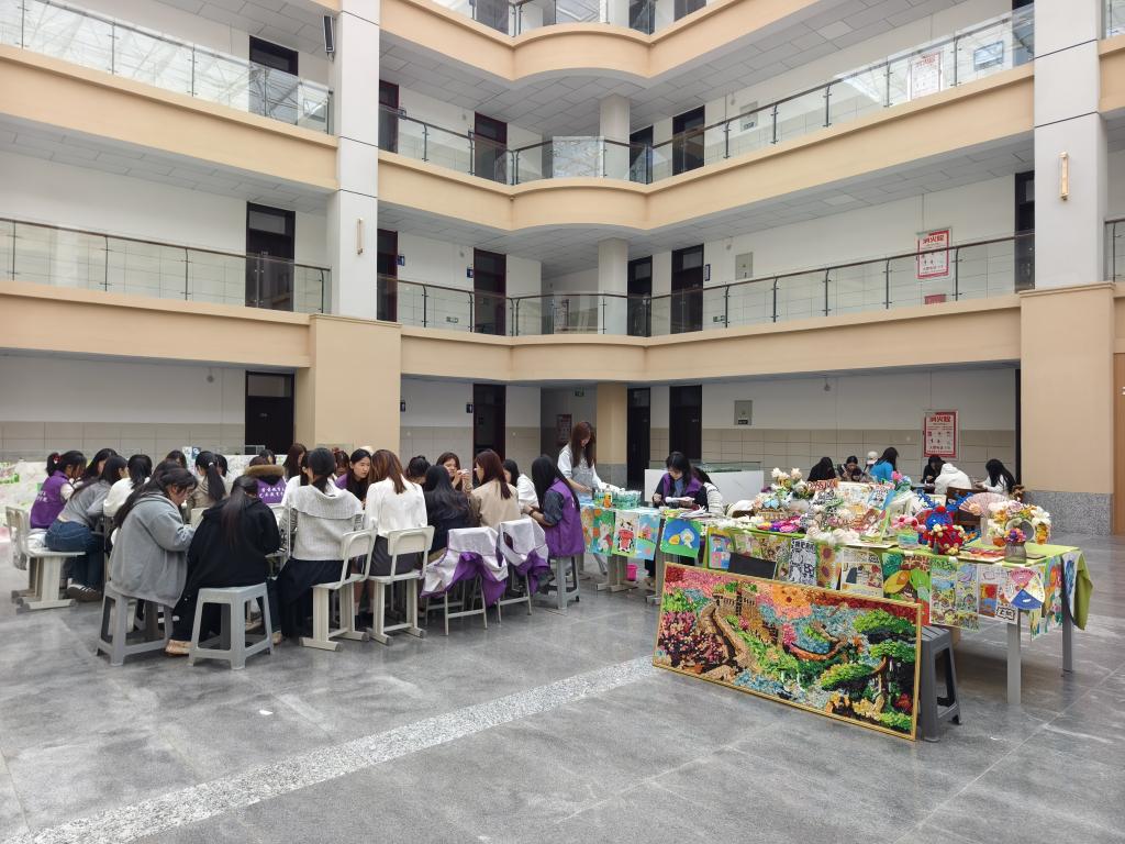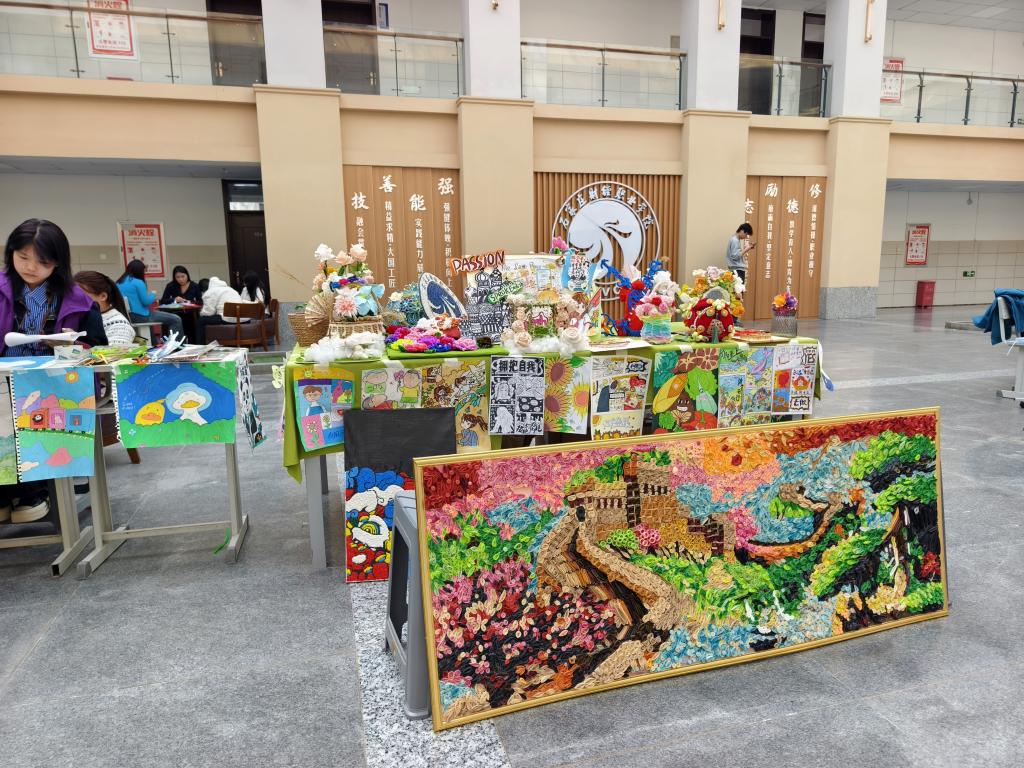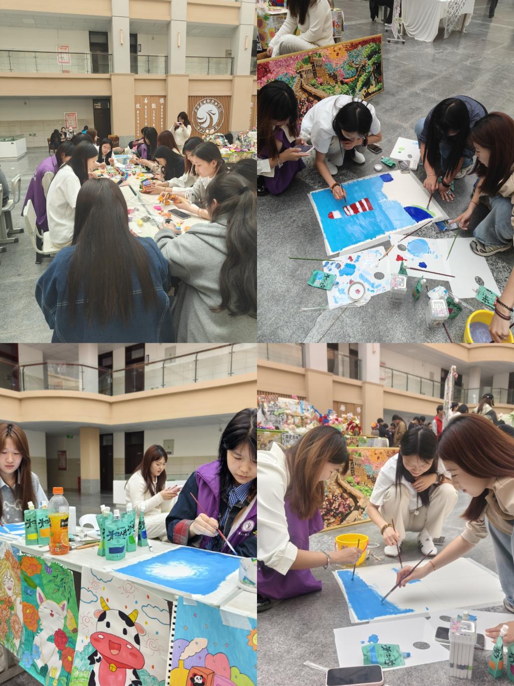 活动现场欢声笑语不断,同学们相互交流灵感、帮忙完善作品、分享手工技巧,彼此距离在互动中拉近。有人细心打磨作品,有人与同伴热烈讨论、灵感碰撞,还有人拿着完成的作品互相展示、打趣玩乐。阳光、笑声与创意作品交织,构成了一幅温暖鲜活的青春画面。大家在动手实践中舒缓心情、释放压力,更收获了创作的快乐与同伴的温暖。